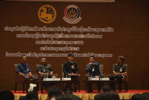 นายอาทร พิมชะนก ผู้อำนวยการศูนย์สารสนเทศเพื่อการพัฒนาชุมชน ร่วมเป็นเกียรติในพิธีเปิดการประชุมเชิงปฏิบัติการพัฒนาศักยภาพเครือข่ายศูนย์เรียนรู้การพัฒนาคุณภาพชีวิตตามหลักทฤษฎีใหม่ประยุกต์สู่ "โคก หนอง นา" ระดับประเทศ โดยมีนายสุรศักดิ์ อักษรกุล อธิบดีกรมการพัฒนาชุมชน เป็นประธานในพิธี พร้อมด้วยผูู้้บริหารกรมการพัฒนาชุมชน กลุ่มเป้าหมายประกอบด้วย ผู้แทนเครือข่ายศูนย์เรียนรู้การพัฒนาคุณภาพชีวิตตามหลักทฤษฎีใหม่ประยุกต์สู่ “โคก หนอง นา” ระดับจังหวัด ๆ ละ 2 คน จำนวน 152 คน เจ้าหน้าที่พัฒนาชุมชนจังหวัด ๆ ละ 1 คน จำนวน 76 คน และนักวิชาการพัฒนาชุมชนส่วนกลาง รวมจำนวนทั้งสิ้น 250 คน วัตถุประสงค์เพื่อเสริมสร้างศักยภาพเครือข่ายศูนย์เรียนรู้การพัฒนาคุณภาพชีวิตตามหลักทฤษฎีใหม่ประยุกต์สู่ “โคก หนอง นา โมเดล” ให้มีความสามารถในการขับเคลื่อนการดำเนินงานศูนย์เรียนรู้ด้านการพัฒนาคุณภาพชีวิตตามหลักปรัชญาของเศรษฐกิจพอเพียงและทฤษฎีใหม่ได้อย่างมีประสิทธิภาพ จัดระหว่างวันที่ 28 - 30 ตุลาคม 2568