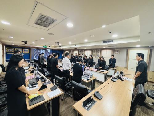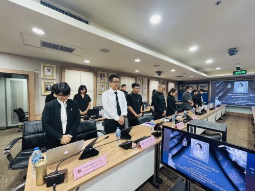 ก่อนเริ่มวาระการประชุม นายอาทร พิมชะนก ผู้อำนวยการศูนย์สารสนเทศเพื่อการพัฒนาชุมชน นำทีมผู้อำนวยการกลุ่มงาน และเจ้าหน้าที่ในสังกัดศูนย์สารสนเทศเพื่อการพัฒนาชุมชน ร่วมยืนสงบนิ่งน้อมรำลึกในพระมหากรุณาธิคุณของ สมเด็จพระนางเจ้าสิริกิติ์ พระบรมราชินีนาถ พระบรมราชชนนีพันปีหลวง พระผู้ทรงสืบสานภูมิปัญญาผ้าและงานหัตถกรรมหัตถศิลป์ และพระราชทานเป็นพระราชมรดกของแผ่นดินให้แก่ปวงชนชาวไทย