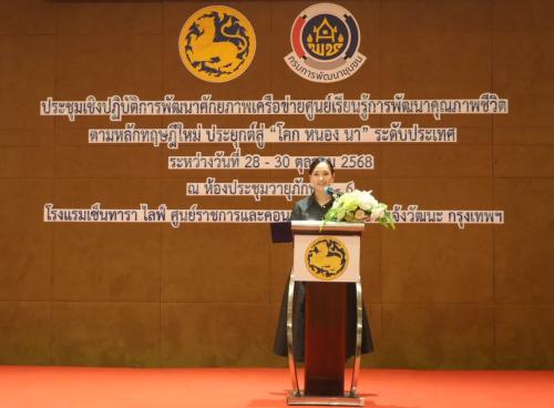 นอกจากนี้ ยังได้กล่าวเสริมพลัง ผู้นำกลุ่ม องค์กร และเครือข่าย เพราะถือว่า ผู้นำชุมชนทุกท่านคือ “หัวใจ” ของการเปลี่ยนแปลง คือพลังที่จุดไฟในหัวใจของคนทั้งชุมชน เวทีในวันนี้จึงไม่ใช่เพียงการอบรม แต่คือการ “รวมพลัง” ของเครือข่ายผู้มีหัวใจพัฒนา เพื่อสร้างการเรียนรู้ การแลกเปลี่ยน และการเชื่อมโยงจากระดับพื้นที่สู่ระดับประเทศ ภายใต้นโยบายของรัฐบาล กระทรวงมหาดไทยมุ่งเน้นให้ทุกภารกิจ “บูรณาการเพื่อประชาชน” กรมการพัฒนาชุมชนจึงเป็นหน่วยงานสำคัญที่เชื่อมโยงทุกแนวนโยบายของรัฐบาลกับชีวิตจริงของประชาชน ทุกโครงการ ทุกกิจกรรม คือ “เครื่องมือแห่งความหวัง” ที่ช่วยให้ชุมชนไทยสามารถยืนหยัดได้ด้วยตนเองอย่างสง่างาม