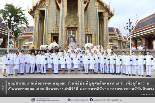 ศูนย์สารสนเทศเพื่อการพัฒนาชุมชน ร่วมพิธีบำเพ็ญกุศลสัตตมวาร 7 วัน เพื่ออุทิศถวายเป็นพระราชกุศลแด่สมเด็จพระนางเจ้าสิริกิติ์ พระบรมราชินีนาถ พระบรมราชชนนีพันปีหลวง