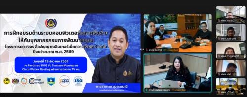 นายสยาม ศิริมงคล อธิบดีกรมการพัฒนาชุมชน มอบหมายให้นายอาทร พิมชะนก ผู้อำนวยการศูนย์สารสนเทศเพื่อการพัฒนาชุมชน เป็นประธานในกิจกรรมการฝึกอบรมด้านระบบคอมพิวเตอร์และเครือข่ายให้กับบุคลากรกรมการพัฒนาชุมชน ภายใต้โครงการเช่าวงจรสื่อสัญญาณอินเทอร์เน็ตความเร็วสูง 4 ระดับ ประจำปีงบประมาณ พ.ศ. 2569 ในรูปแบบ Hybrid ผ่านระบบการประชุม Cisco Webex Meeting และการถ่ายทอดสดผ่าน TV พช. ณ ห้องประชุม 5001 ชั้น 5 กรมการพัฒนาชุมชน โดยมี นางสาวประภาพรรณ วุ่นสุข ผู้อำนวยการกลุ่มงานพัฒนาระบบเทคโนโลยีสารสนเทศ บรรยายเรื่อง "โครงสร้างพื้นฐานของกรมการพัฒนาชุมชน และสร้างความตระหนักด้านความมั่นคงปลอดภัยไซเบอร์"