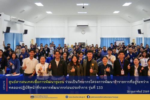 ศูนย์สารสนเทศเพื่อการพัฒนาชุมชน ร่วมเป็นวิทยากรโครงการพัฒนาข้าราชการที่อยู่ระหว่างทดลองปฏิบัติหน้าที่ราชการพัฒนากรก่อนประจำการ รุ่นที่ 133