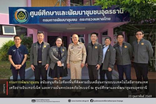 กรมการพัฒนาชุมชน สนับสนุนทีมไอทีลงพื้นที่ติดตามขับเคลื่อนงานระบบเทคโนโลยีสารสนเทศ เครือข่ายอินเทอร์เน็ต และความมั่นคงปลอดภัยไซเบอร์ ณ ศูนย์ศึกษาและพัฒนาชุมชนอุดรธานี