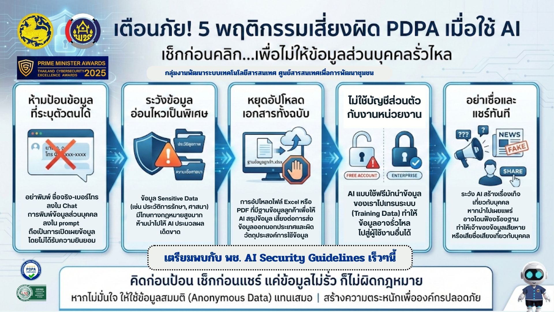 📌 เซฟเก็บไว้เลย! โพยกันพลาดสำหรับชาว พช. 🏢 ใช้ AI ช่วยทำงานยังไง? ให้เก่งด้วยและ 'ไม่ผิด PDPA' 5 ข้อปฏิบัติง่ายๆ เพื่อความปลอดภัยของข้อมูลคุณและองค์กร ✅